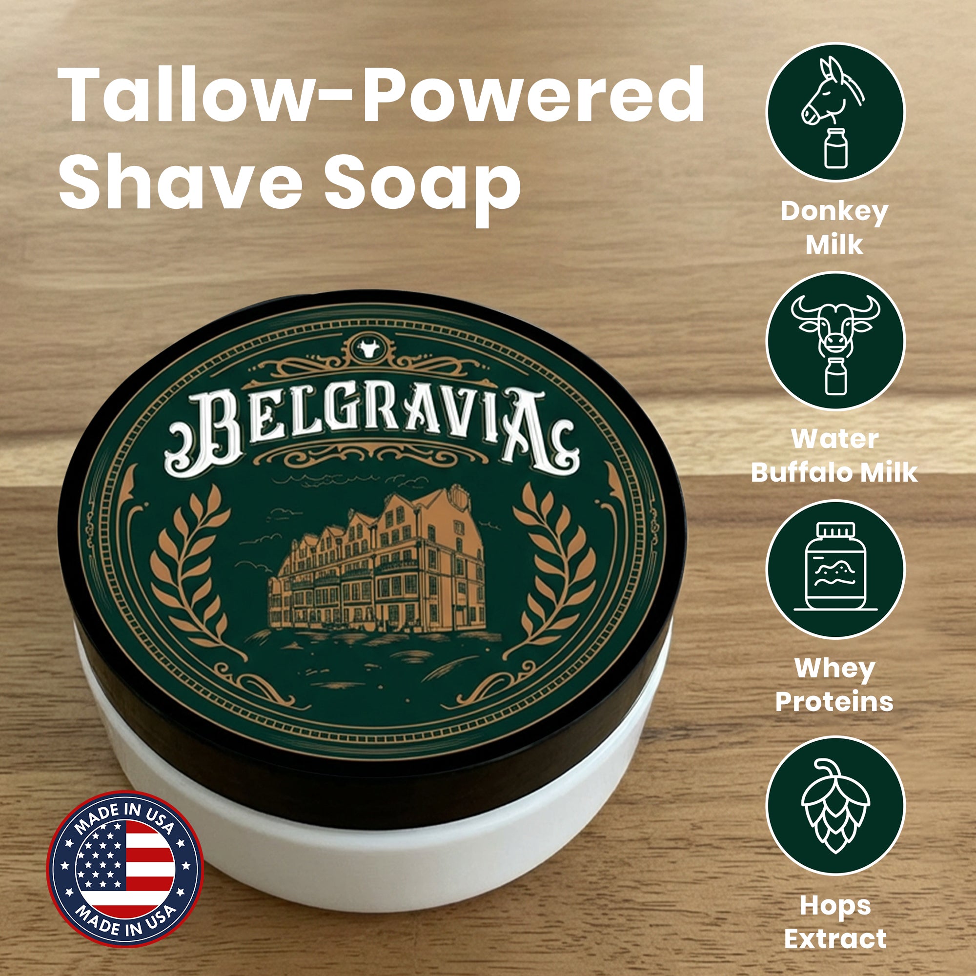 Aqua (Water), Potassium Stearate, Sodium Stearate, Potassium Tallowate, Sodium Tallowate, Potassium Ricinoleate, Sodium Ricinoleate, (Vegetable) Glycerin, Lac Asinae (Donkey Milk), Potassium Shea Butterate, Sodium Shea Butterate, Garcinia Indica Seed (Kokum) Butter, Theobroma Cacao Seed (Cocoa) Butter, Milk Protein, Lac (Milk), Humulus Lupulus (Hops) Extract, Parfum (Fragrance), Linum Usitatissimum (Hydrolyzed Linseed) Seed Extract, Linoleic Acid, Linolenic Acid, Lanolin, Phenoxyethanol, Caprylyl Glycol, Sorbic Acid.