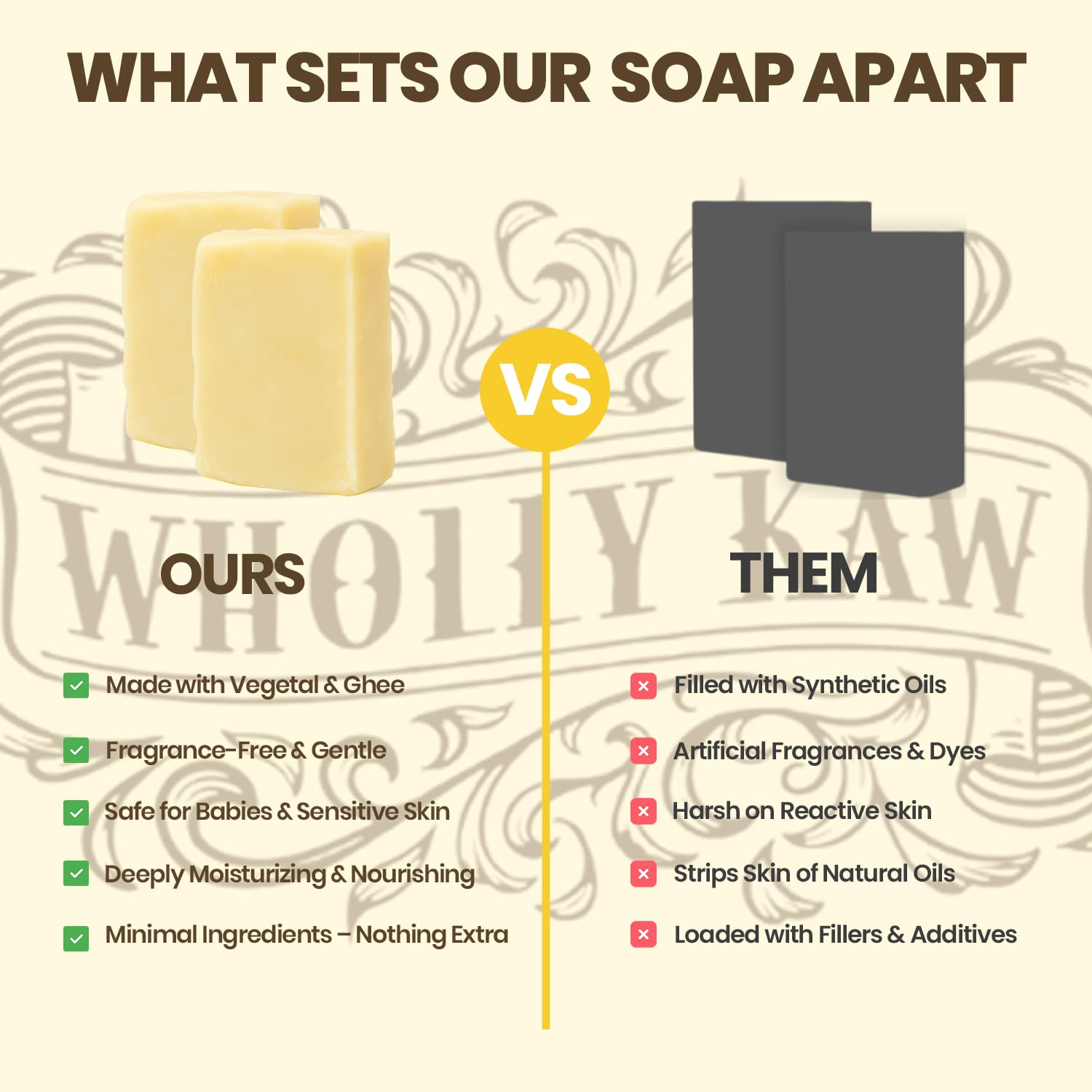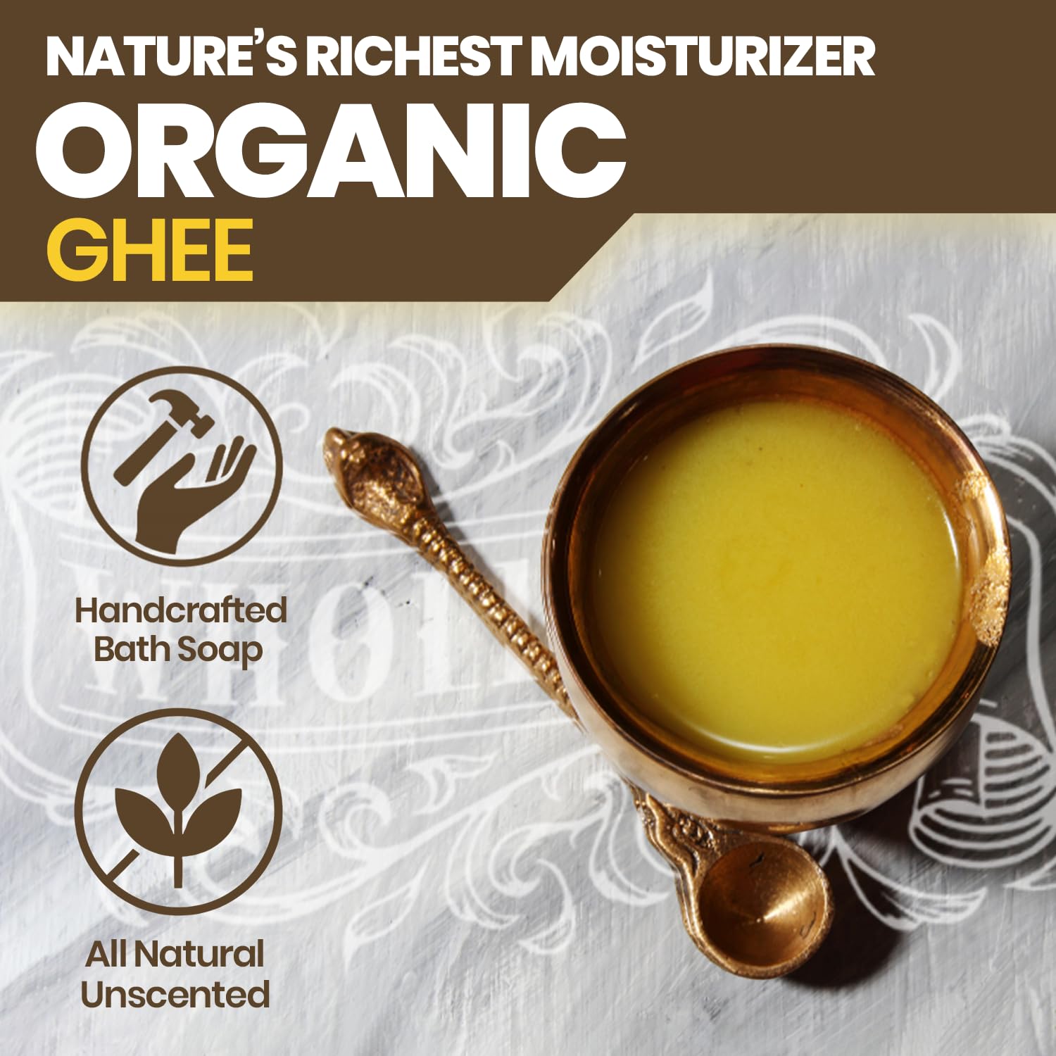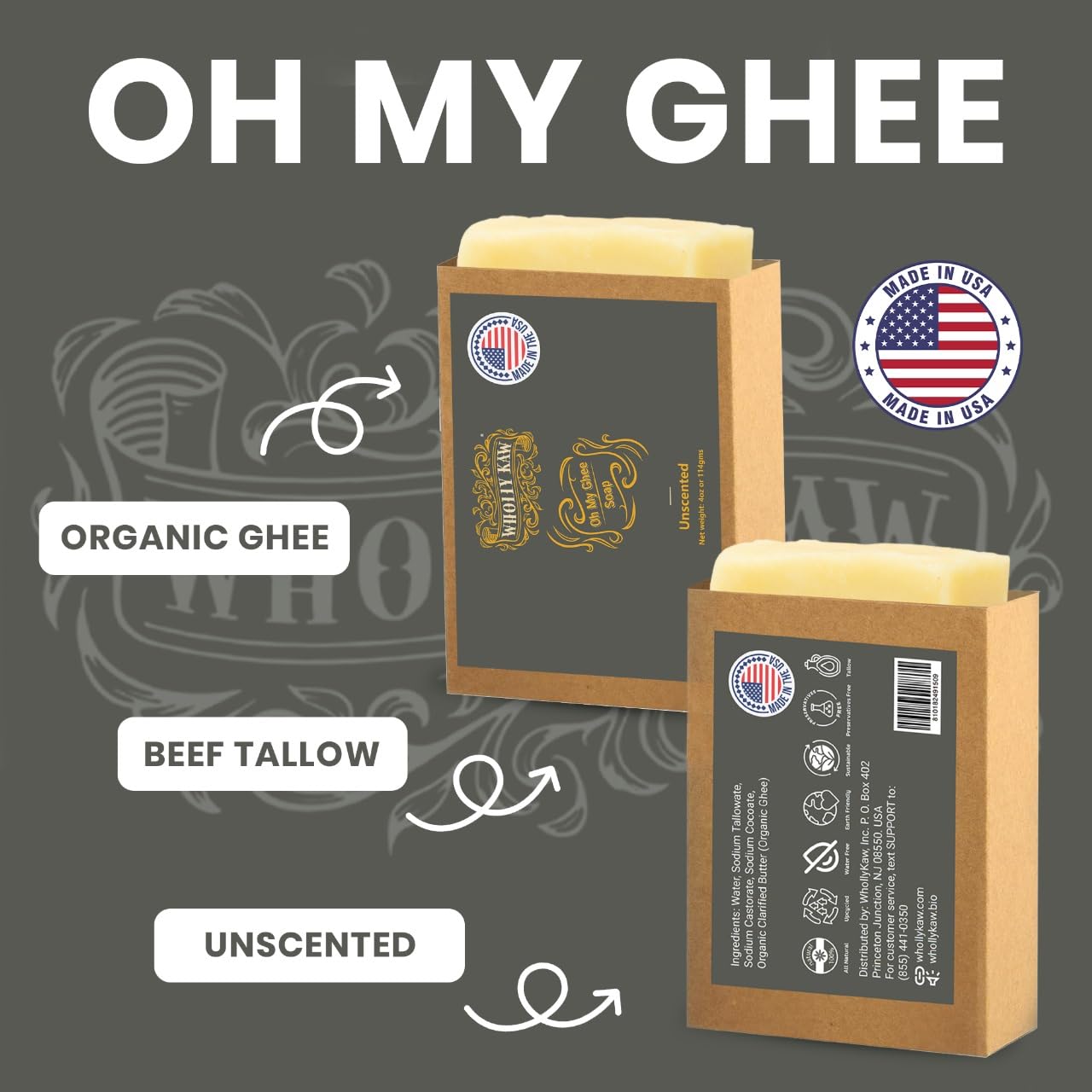 Organic Ghee, Tallow Soap Bar with Natural Ingredients. Unscented. Fragrance free Face & Body - for M...