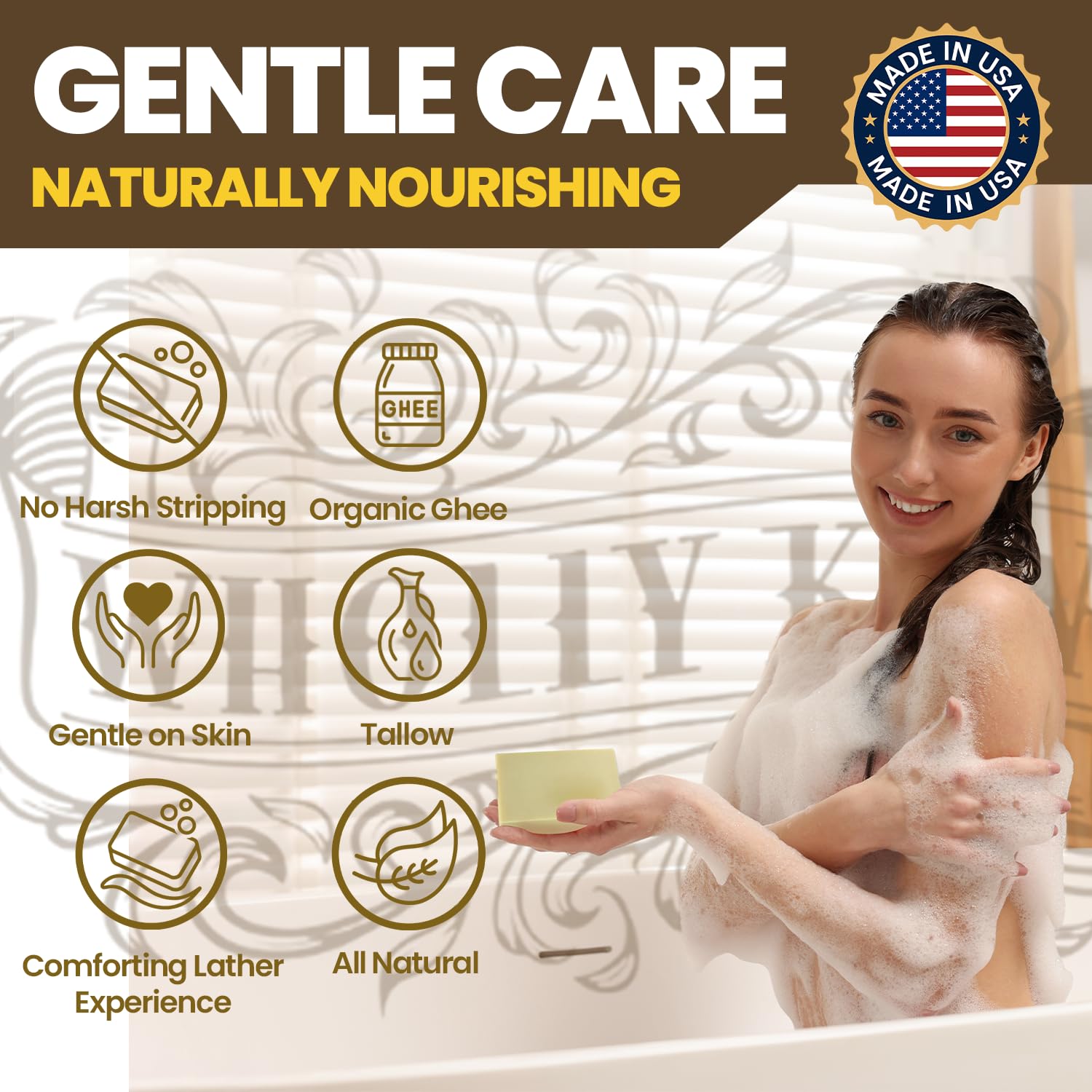 Organic Ghee, Tallow Soap Bar with Natural Ingredients. Unscented. Fragrance free Face & Body - for Men, Women & Teens. Gentle Body Soap for sensitive skin 4.0 oz